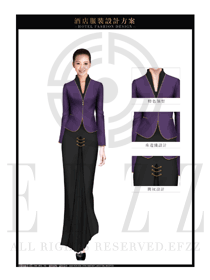 新款紫色女款酒店中餐迎賓