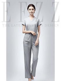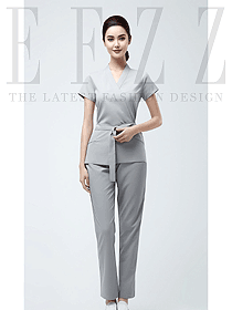 小V領短袖洗手衣分體套裝