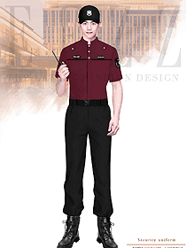 酒紅色夏裝物業(yè)安保員工制